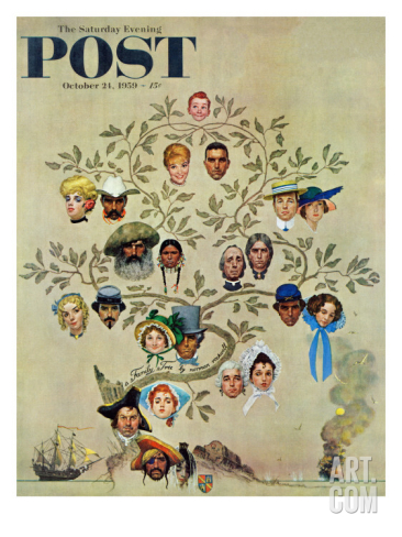 I noticed that toward the end of his time at the Post, he was exploring more diverse and complicated narratives than those that dominated his work in the 20s, 30s, and 40s. One of my favorites was this 1959 cover, “Family Tree,” which evoked the complexity of America’s family tree.