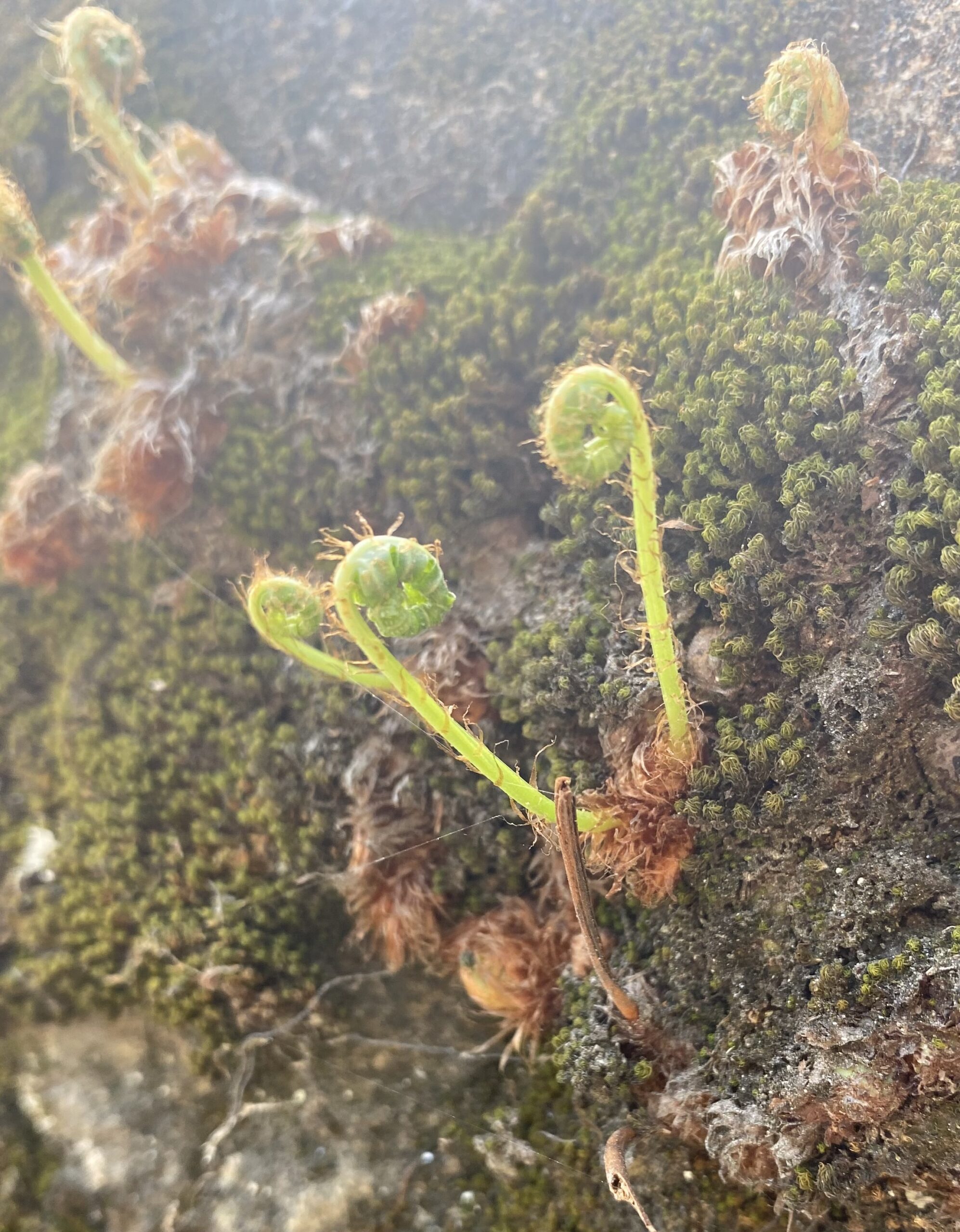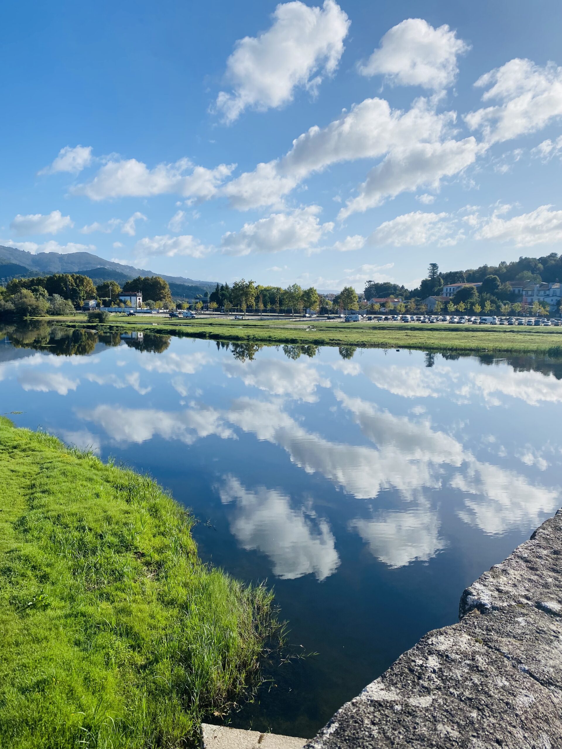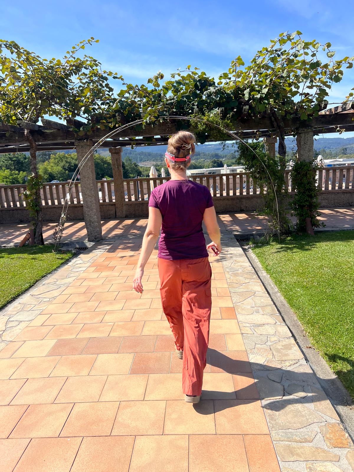 walking next to a stone wall between Arcos and Barcelinhos, Portugal, on Day 3.