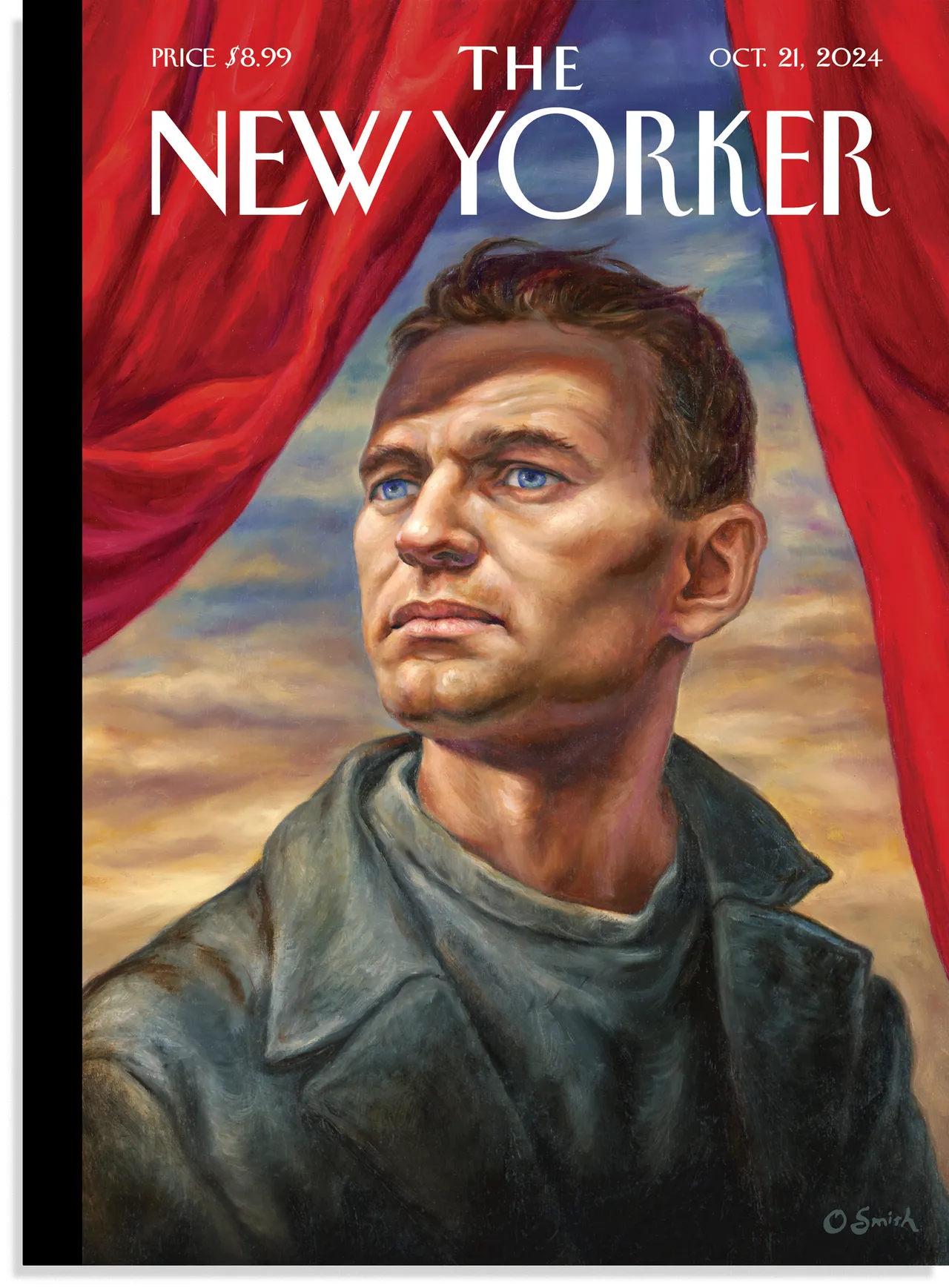 Alexei Navalny, the Russian dissident, onetime presidential candidate and long opponent of Putin, died in prison on February 16, 2024. The New Yorker of October 21, 2024, beatifies him on its cover. In a long excerpt from his memoir, partly written from prison, he describes two “techniques” that help him to keep believing in his principles. First, he forced himself to meditate for hours and hours on his own death, the worst possible death — forgotten by everyone, no funeral, no family, buried in an unmarked grave. The second technique, he says: