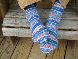 Many years ago the fishermen not only knit socks but also Ganser sweaters as well as their nets. A lot of men would dye the yarn as well. The women would gather and spin. They would not let others who wanted to knit start until they could spin properly.
