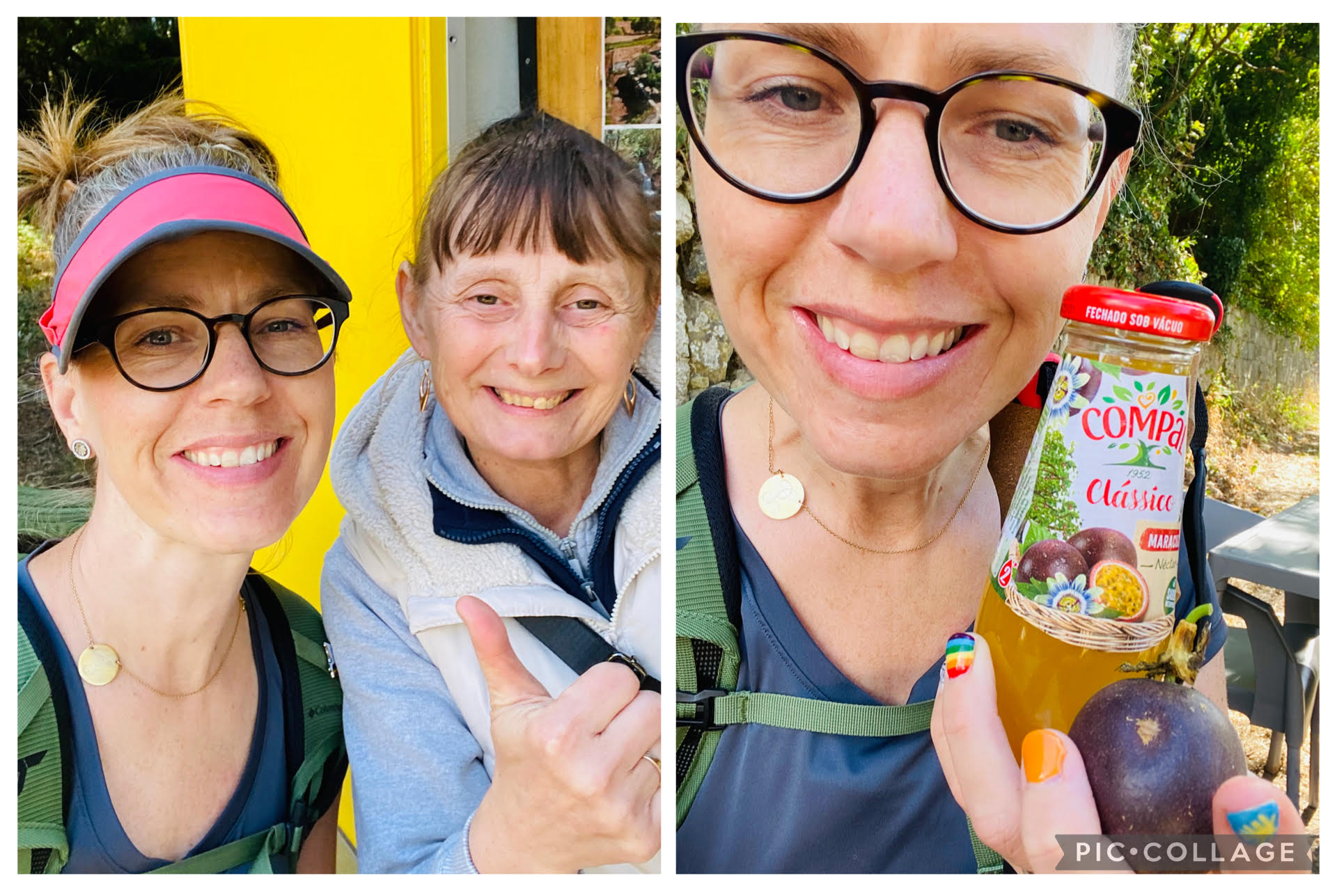 I had another glimmer two days later – the day we crossed the border from Portugal to Spain. It was a sunny day (welcome back, pink visor!) and we had just stopped at a food truck where a Belarussian woman named Veranika sold us potato pies, told us the story of her life, and gave me a passion fruit from her garden to go along with the juice I’d also purchased from her.