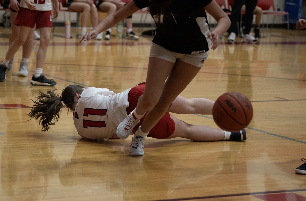 Basketball is a contact sport; sometimes you get pushed down. Sometimes you trip on your own feet and tumble. Sometimes the floor is slippery and you just fall. Sometimes you get knocked sideways.