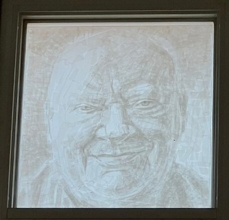 To celebrate Alan’s life was to kick at the darkness that so easily obscures those who live on the margins. Indeed, six years ago, a translucent portrait of Alan, along with a number of other regulars, had been commissioned to adorn the high windows at 541 Eatery & Exchange. Now one need only look up, on a bright sunny day, to see the light illuminate Alan’s weathered features, still present in the place he called home.